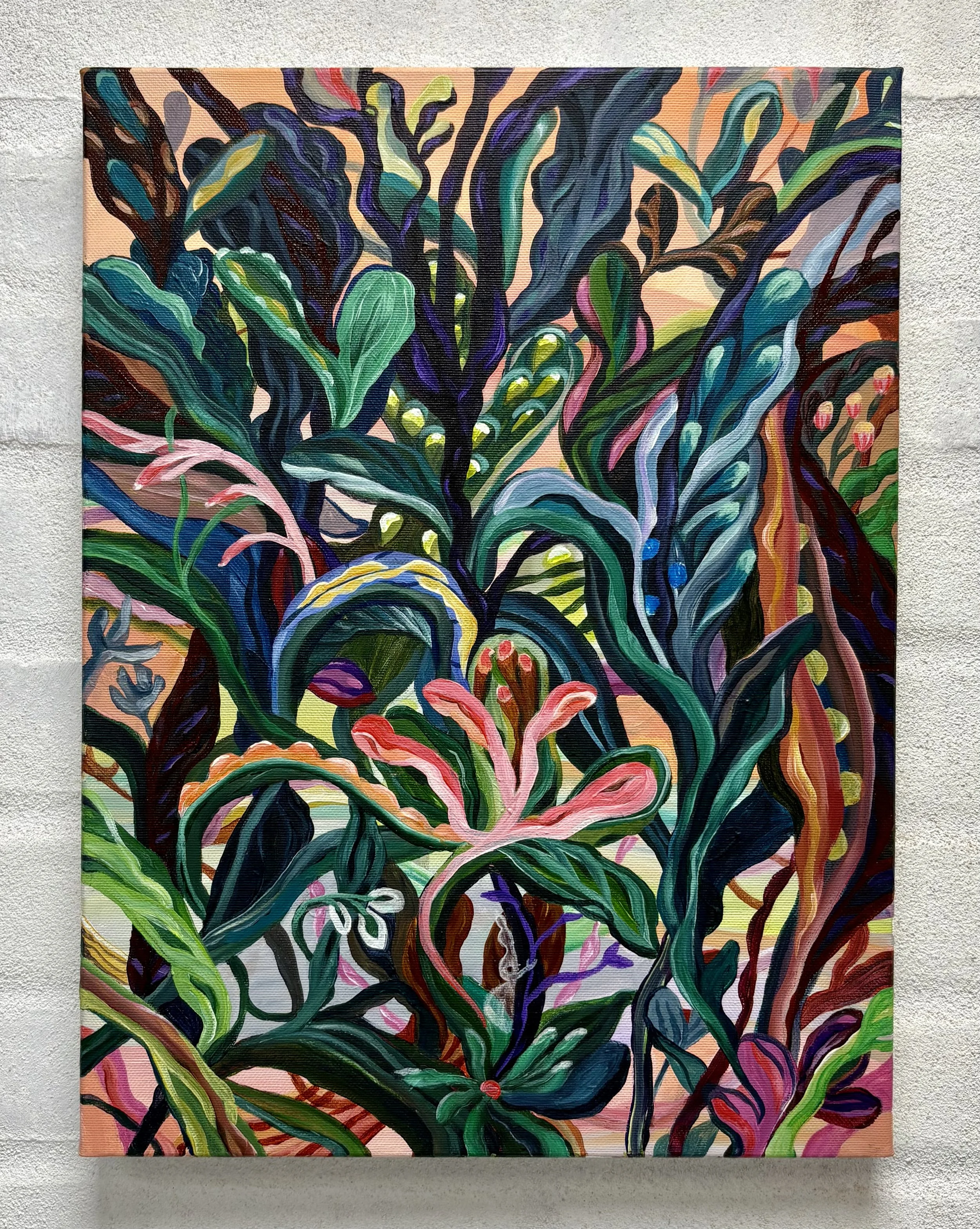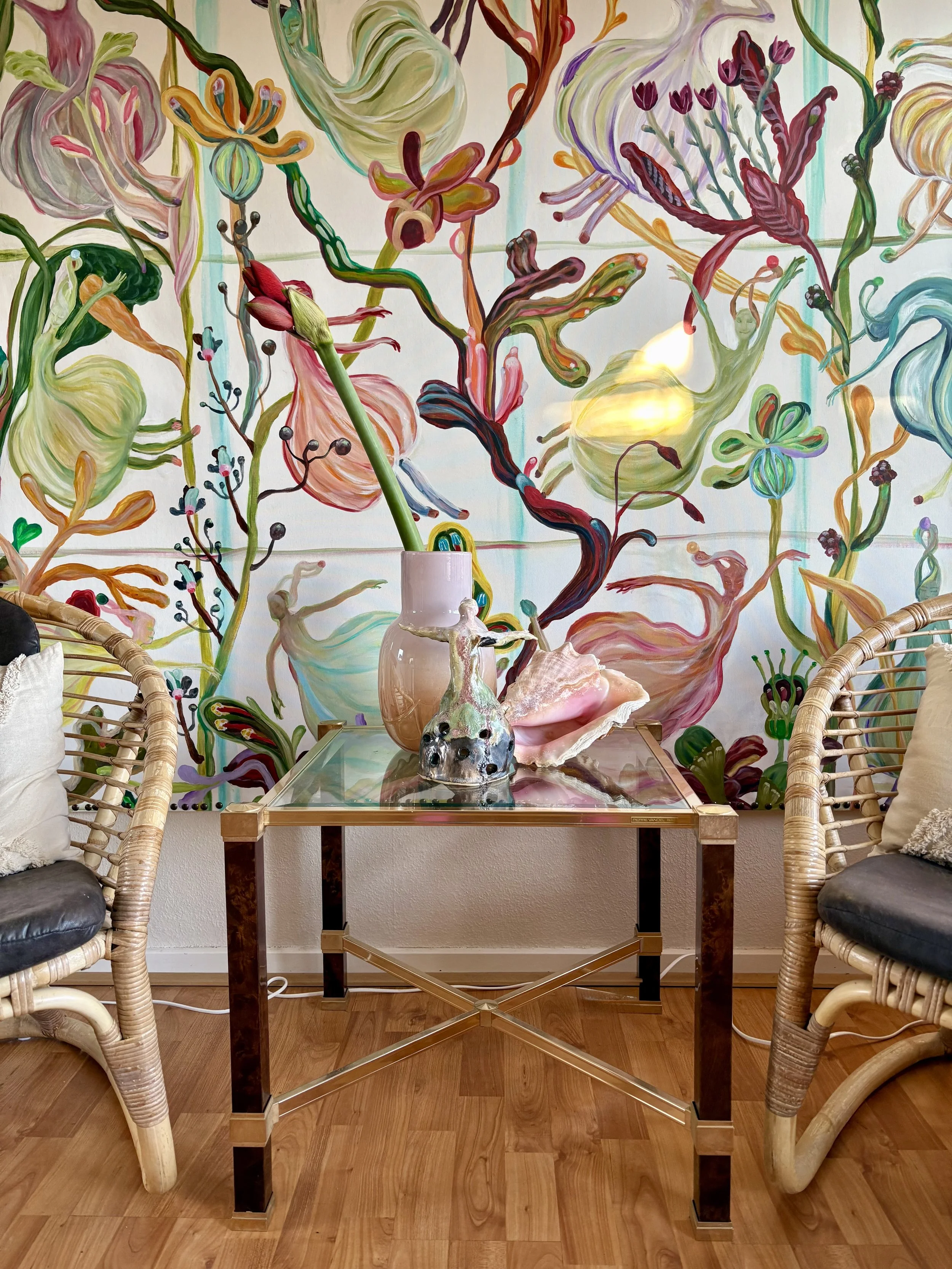 Flow and sensory experience are the essence of Natasscha Girelli’s art. Her paintings immediately captivate the eye with lively floral forms that grow and bloom in a vibrant symphony of colors across the canvas. Through soft and expressive brushstrokes, NG speaks to the senses and the imagination, drawing the viewer into a world reminiscent of a primordial ocean where water plants and familiar land flowers sway together in a harmonious, flowing connection. Her paintings reflect the eternal movement and profound beauty we are all part of when we step into life on Earth.