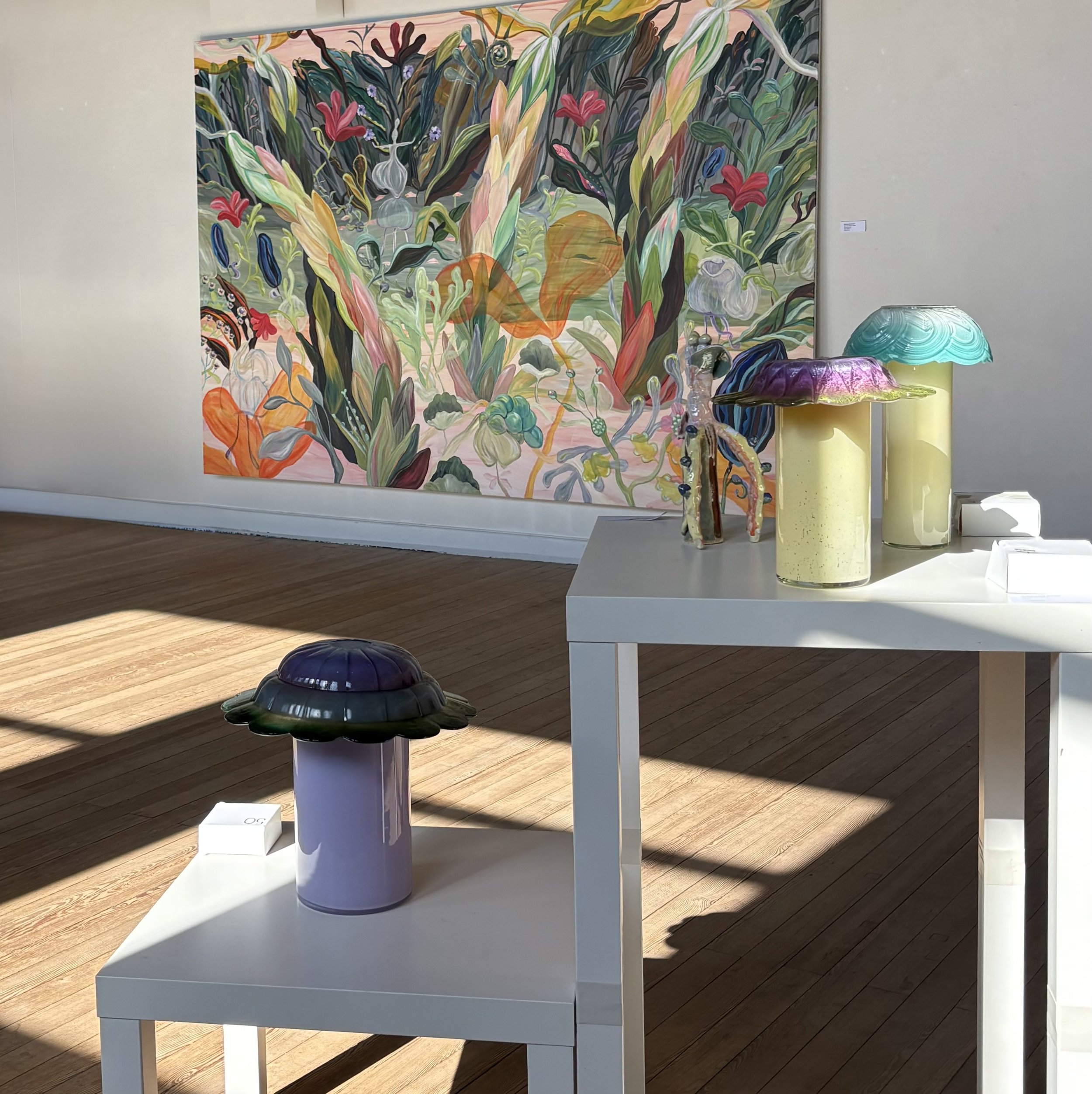 The exhibition brings together paintings, ceramics, and light objects, that defines my fjordling universe.